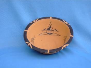 繪畫圖案古樸、簡練,可分三大類:一類為象生性圖案,如張口作吞食狀的魚、悠閑的鹿、搜索食物的蛙等動物紋,還有植物紋。這些象生圖案同史前人類的生活息息相關,形態(tài)生動的動植物紋樣是農耕和漁獵生活的反映。第二類為幾何圖案,有三角形,方格紋、編織紋等,這類圖案多在缽、罐、盆、壺類器皿外璧上部,許多缽類器口緣外側繪黑色寬帶紋,部分大口淺腹器皿的彩陶圖案多繪在內壁上,小口器的圖案則繪在口唇和肩腹部,這些部位多是容易看得見的地方,多數(shù)圖案清晰,筆畫疏朗,這些幾何圖案中,三角紋是由魚紋圖案變化而來,波折紋則是山或水的寫意。