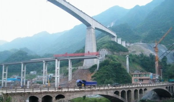 亞洲第一跨位于鎮(zhèn)巴縣巴山鄉(xiāng)兩岔河中游襄渝鐵路Ⅱ線牛角坪雙線特大橋。大橋2006年3月開工,至今年8月12日,該橋主體工程按原計(jì)劃順利合龍。主橋墩埋深50米,主墩墩高98米,全長(zhǎng)577.4米,鐵路雙線T型預(yù)應(yīng)力混凝土連續(xù)剛構(gòu)主跨為192米,位居亞洲第一,在世界上僅次于主跨250米的葡萄牙費(fèi)魯瓦利阿大橋。
