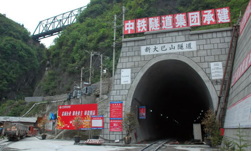 新大巴山隧道全長(zhǎng)10658米,是襄渝二線最長(zhǎng)的隧道,全線關(guān)鍵控制性工程,2005年9月15日正式開工,工期37個(gè)月。隧道地質(zhì)異常復(fù)雜,洞口有危巖落石,洞內(nèi)有巖溶、高壓突水、斷層破碎帶、舊煤窯采空區(qū)、煤層瓦斯、巖爆等不良地質(zhì),同時(shí)隧道洞身長(zhǎng)距離穿越可溶性碳酸鹽的地層,通過溶巖地段長(zhǎng)9900米,占隧道總長(zhǎng)度的93%,集中突水、突泥頻發(fā),日平均涌水量超過36.5萬m3/天。