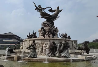 〔舞馬臺〕舞馬之所,舞馬是唐玄宗獨出心裁的大發(fā)明!睹骰孰s錄》稱:“玄宗常教舞馬四百蹄,各為左右,分為部目,為某家寵,某家驕。時塞外亦有善馬來貢者,上俾之教司,無不曲盡其妙。因命衣以文繡,絡(luò)以金銀,飾其鬃鬣,間雜珠玉。奏其曲謂‘傾杯樂’者數(shù)十回。其馬奮首鼓尾,縱橫應(yīng)節(jié)。又施三重板床,乘馬其上,旋轉(zhuǎn)如飛,……每千秋節(jié)(玄宗生日)命舞于勤政樓下。”《津陽門》詩注:“其舞馬,安祿山亦將數(shù)匹以歸而私習之。其后,田承嗣代安有存者,一旦于廄上聞鼓聲,頓挫起舞,廄人惡之,舉篲以擊之,其馬尚為怒未妍妙,因更奮擊,宛轉(zhuǎn)曲盡其態(tài)。廝恐以告,承嗣以為妖,遂戮之,而舞馬自此絕焉!倍鸥Α抖冯u殿》詩“斗雞初賜錦,舞馬既登床”即言此。