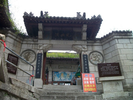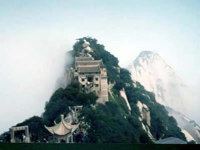 “通天亭”,因和山頂金鎖關(guān)通天門(mén)遙遙相對(duì),所以叫“通天亭”,從這兒出玉泉院,“自古華山一條路”就從大家腳下開(kāi)始沿伸,全長(zhǎng)25華里,共有9567個(gè)臺(tái)階,沿途各位可以看到迷人的風(fēng)光山色,誘人的驚險(xiǎn)神道。