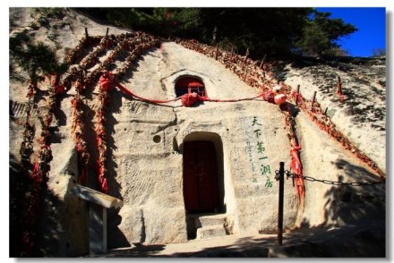 “洞房花燭夜”中“洞房”一詞就源于華山西峰。過(guò)去,由于華山路險(xiǎn)難于攀登,一般人望而卻步,這就為早期一些要隱蔽修行的人提供了絕好的去處。而在山上難以找到筑觀蓋廟的材料,隱士們就鑿石洞而居,修行悟道。