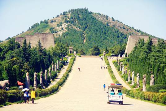 乾陵是第一批全國重點(diǎn)文物保護(hù)單位,也是盛唐文化的代表性旅游區(qū),位于乾縣城北6千米的梁山上,是中國唐王朝第三代皇帝高宗李治和中國歷史上唯一的女皇帝武則天的合葬陵,仿唐長安城格局構(gòu)筑,分為宮城、皇城和外城三個部分。內(nèi)城面積約為230萬平方米,有南朱雀、北玄武、東青龍、西白虎四門,外城周長40千米,F(xiàn)存有華表、翼馬、無字碑、六十一蕃臣石像等精美絕倫的大型石刻100多件。陵園的東南隅分布有17座陪葬墓,出土以唐三彩為代表的珍貴文物4000余件,壁畫1200多平方米,石雕線刻畫150平方米,其中永泰公主墓、章懷太子墓和懿德太子墓地宮已對中外游客開放,為國家4A級旅游景區(qū)。