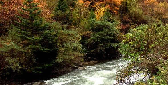 奶子溝:在藏語(yǔ)中是美麗富饒、幸福安寧之意。奶子溝八十里彩林風(fēng)情谷因身處深谷獨(dú)享清幽雅靜的奶子溝而得名,又以美甲天下的彩林世界而聞名。這里植被豐茂,陽(yáng)光燦爛,氧氣充足,是個(gè)天然的大“氧吧”。奶子溝彩林洋洋灑灑長(zhǎng)達(dá)八十里,蔚為壯觀。樹(shù)種主要由樺樹(shù)、松樹(shù)、柏樹(shù)、楓樹(shù)和各種喬木組成,還有不同色彩的針葉林、闊葉林、次生林、灌木叢點(diǎn)綴其間,密密麻麻地覆蓋了一坡又一坡。在純凈的藍(lán)天底下,紫紅、粉紅、橘紅、金紅、深黃、草綠、黃綠、棕紅、褐色的樹(shù)木形成了“萬(wàn)類霜天競(jìng)自由”之勢(shì)。進(jìn)入彩林世界你會(huì)感覺(jué)進(jìn)了油彩的世界,任你語(yǔ)言學(xué)家、色彩學(xué)家在它面前都會(huì)感到詞匯的匱乏,色彩的蒼白。