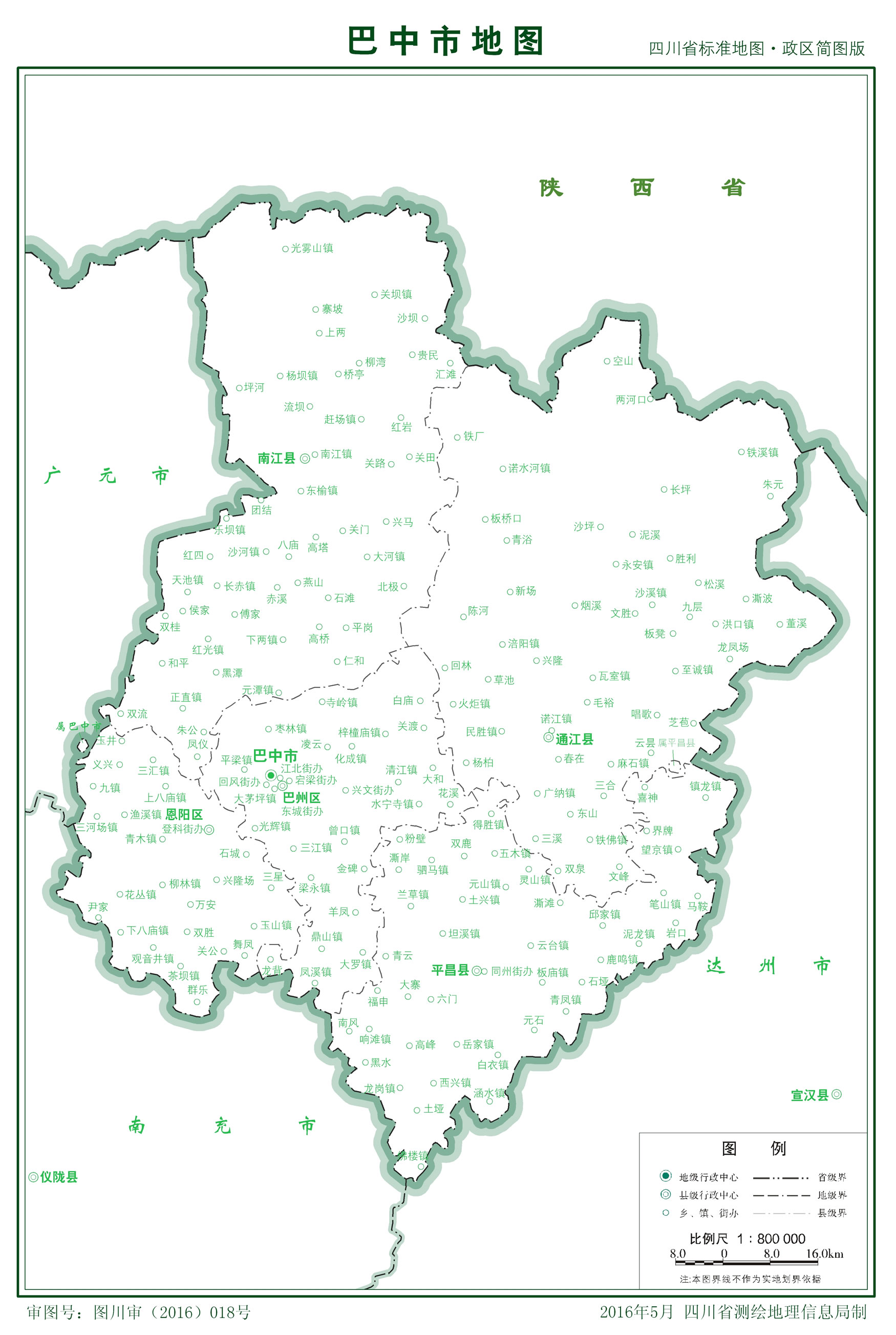 2000年6月14日,經(jīng)國(guó)務(wù)院批準(zhǔn)撤銷巴中地區(qū)建立巴中市(地級(jí)) [80];12月27日,正式掛牌成立,以市管區(qū)縣,轄巴州區(qū)、通江縣、南江縣、平昌縣。