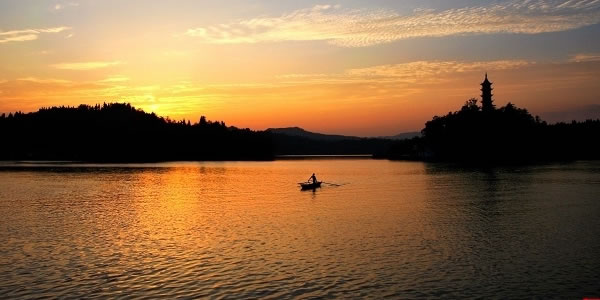 (1)川東西子湖——翠湖 出岳池東門11公里,就到了我市著名的風(fēng)景湖-岳池翠湖,即川北第一風(fēng)景湖。翠湖,原名響水灘水庫,位于城北8公里。1959年開始動工興建,次年8月大壩建成蓄水,蓄水量近170萬立方米。后縣委、縣府充分利用自然條件,1983年將水庫興建為旅游風(fēng)景區(qū),因山清水秀,翠色可人而命名翠湖。"翠湖"二字由著名書法家李半黎書寫。有翠湖八景之說,即:玉帶長堤、平湖嵐光、芳園秋月、溢流飛瀑、銀光倒影、龜山攬勝、龍華夕照、金城煙云。