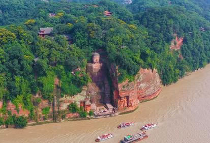 樂(lè)山大佛景區(qū)位于樂(lè)山市郊,岷江、青衣江、大渡河三江匯流處,與樂(lè)山城隔江相望。景區(qū)由凌云山、麻浩巖墓、烏尤山、巨形臥佛等組成。
