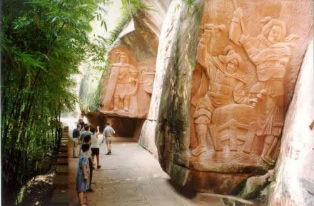 蜀南竹海景區(qū)內(nèi)竹林、絕壁、寺廟、古寨構(gòu)成的文化長廊景觀,綿延20余公里,是天人合一的曠世奇觀。在千仞絕壁之上,仙寓硐、天寶寨、三十六計摩崖石刻等,是國內(nèi)罕見的佛道儒共融的中國丹霞絕壁文化長廊景觀,是大自然的鬼斧神工和古今匠人智慧的結(jié)晶的杰作。