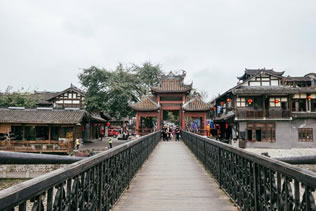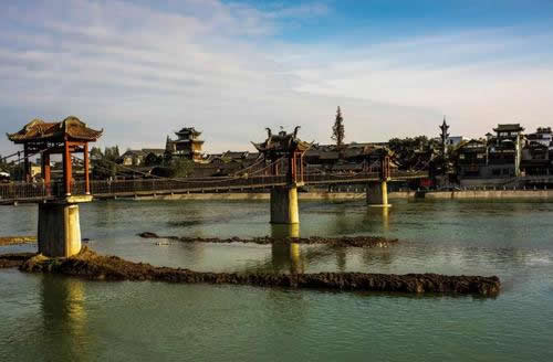元通古鎮(zhèn)三面環(huán)水,一面環(huán)山。千百年來,滾滾江水滋潤著這方神圣的土地。江岸之外良田萬頃,古鎮(zhèn)街頭院落森森。大小不一的街巷保存完好,木板房、青瓦房相連成片,遺存至今的古老民居,泱泱然散發(fā)著濃濃的古韻,挪動(dòng)著每一寸腳步,推開每一扇窗欞,似乎都闖開了歷史的大門自己也便,情不自禁、身不由己地也便走進(jìn)了過去,走進(jìn)了歷史。走進(jìn)元通深處,一幢幢民房,一條條街巷,摸著這歷史的邊邊角角,終于找到了心靈的歸宿。元通古鎮(zhèn)依山傍水一路修來,鎮(zhèn)上的主要建筑都沿文井江拔地而起,上千戶人家臨河而居,水是他們的寄托,水是他們的立命之本,水與這里的人結(jié)下了不解之緣。所以,生活在這里的居民,家家的后院里都有石階可以下到河邊。古時(shí),鎮(zhèn)上的人出行大都靠水遠(yuǎn),家家戶戶都順著后門的石階進(jìn)進(jìn)出出,那情形有如走進(jìn)了以一處江南水鄉(xiāng)。在江河之上,一道鐵橋?qū)⒐沛?zhèn)與外灘緊緊地連在一起,時(shí)疏時(shí)密的鄉(xiāng)民在橋上來來去去,如履平地。這座橋名叫匯江橋,全長164米、寬2、5米、高6米,造型古雅,除兩端橋樓,中間幾座帶歇山項(xiàng)的涼亭在寬闊的江面上頗顯風(fēng)致,橋下是文錦江,味江和泊河江在元通的匯流之處,流床寬闊,水流湍急,極為有利于水上航運(yùn)。據(jù)方志載,古運(yùn)通航,元通堪以重任,從此起航,須經(jīng)白馬渡,陳家渡、方渡,再順著崇州境內(nèi)最大最長的河流――西河到新津龍王渡,然后進(jìn)入岷江,這段30余公里的航道乃為崇山十分重要水上交通。正是通過這條航道,元通境內(nèi)的土特產(chǎn),才得以遠(yuǎn)銷樂山、宜賓、瀘州等地,同時(shí)他們也從這條道上獲得了生活中的日用百貨,因元通是物流的集散地。同時(shí),外地客商也多聚匯于此,于是元通市井繁榮,生意興隆,到清咸豐年間終成大鎮(zhèn)。匯江橋雖造型古雅,但是一座現(xiàn)代橋,其修建年代竟為1986年,據(jù)載,最早的鐵索橋建于清光緒年間,長達(dá)130余米,氣勢宏大壯觀,因晚清末年清明會(huì)時(shí)人多坍塌,其后人元通人又募資再建,造型如同今日,可惜毀于“文革”風(fēng)暴,視橋?yàn)榍楦屑耐械脑ㄈ耍鲇趯?duì)歷史的情感顧念,再次集資修建了索橋。