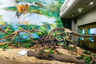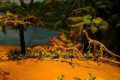 自自貢恐龍博物館的現(xiàn)有基本陳列“侏羅紀(jì)恐龍世界”,按照“恐龍世界——恐龍遺址——恐龍時代的動植物——珍品廳——恐龍再現(xiàn)”順序展開,吸收現(xiàn)代陳列理念,采用場景式展示、擬人化組合,輔之以聲、光、電及多媒體等展示手段,展開了一幅蔚為壯觀、神奇瑰麗史前畫卷,再現(xiàn)了由恐龍及許多早已消失的物種構(gòu)成的神秘多姿的侏羅紀(jì)時代。同時,還突出展示了博物館的精華—化石埋藏現(xiàn)場,給人以強烈的視覺沖擊和心靈震撼,充分體現(xiàn)了專業(yè)博物館與遺址博物館的雙重特色。