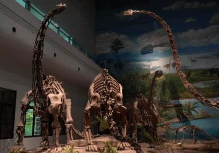 4.完整度高。館藏恐龍及其它古脊椎動物化石完整度都很高,大部分為關(guān)聯(lián)保存在一起的完整骨架。在已發(fā)掘出的200多個個體中就有40多具完整率在60%以上的骨架,完整率在80%以上的骨架有10多具。這在世界古脊椎動物中是非常難得的,具有極高的價值。