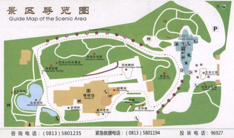 7.景致優(yōu)美?铸埐┪镳^主館造型獨特,猶如一堆巨石兀立在恐龍化石群產(chǎn)出地上。游客中心則似一具巨大的劍龍橫臥在洪荒古樸的亞熱帶叢林之中,二者交相輝映,相得益彰。園區(qū)內(nèi)有大量的鐵樹、銀杏、松柏等中生代植物,特別是移植了30余株與恐龍同時代有“活化石”之稱的植物——桫欏,充分地營造了恐龍生活的史前環(huán)境。整個園區(qū)環(huán)境優(yōu)美,風(fēng)景宜人,是一個旅游、休閑的絕佳場所。