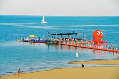 景區(qū)還將增添激情水上飛碟、快艇漂移、水上沙發(fā)、水上UU船、帆船、海上滑梯、海上蹺蹺板等數(shù)十項(xiàng)大型游樂(lè)設(shè)施,讓這里真正成為海上“迪士尼”。作為配套設(shè)施,在人工海灘西側(cè)修建濱海路,全長(zhǎng)1.3公里,道路寬24米,為景區(qū)內(nèi)步行觀景道路,道路兩側(cè)綠化面積約6700平方米。綠化廣場(chǎng)總面積12萬(wàn)平方米,景區(qū)停車場(chǎng)總面積約4700平方米。景區(qū)設(shè)置為沙灘親水區(qū)、沙灘游泳休閑區(qū)、水上運(yùn)動(dòng)休閑中心和水上休閑娛樂(lè)區(qū)。其中,位于沙灘游泳休閑區(qū)已經(jīng)建成的海景會(huì)所,是目前國(guó)內(nèi)北方最大的單體木結(jié)構(gòu)海景酒店會(huì)所,設(shè)有餐飲、住宿、淋浴、商務(wù)、娛樂(lè)等設(shè)施,并提供有地道的天津狗不理包子。另外,會(huì)所周邊正在建設(shè)游艇會(huì)所、五星級(jí)酒店、運(yùn)動(dòng)廣場(chǎng)、低密度住宅、高爾夫球場(chǎng)等設(shè)施。配套服務(wù)設(shè)施將逐步完善。