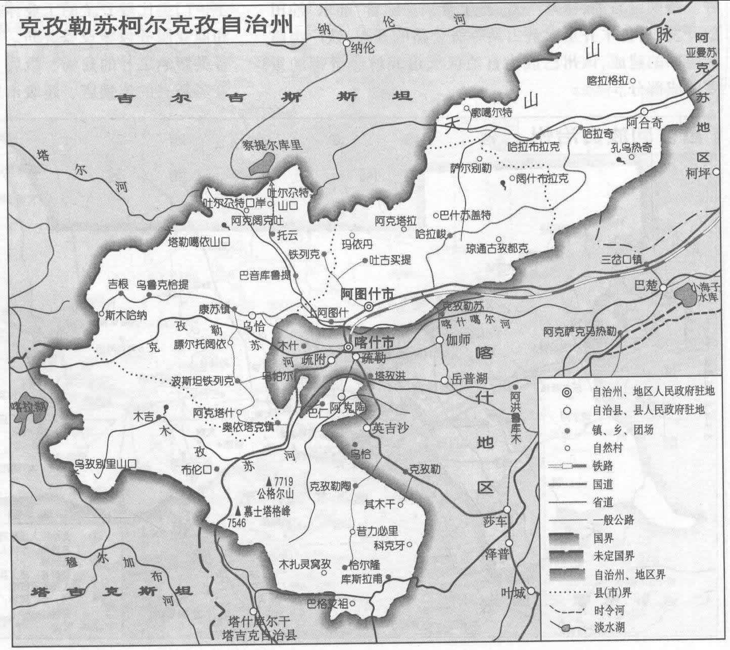 克孜勒蘇柯?tīng)柨俗巫灾沃,?jiǎn)稱“克州”,隸屬于新疆維吾爾自治區(qū),位于新疆維吾爾自治區(qū)西南部,地跨天山山脈西南部、帕米爾高原東部、昆侖山北坡和塔里木盆地西北緣,自治州北部和西部分別與吉爾吉斯斯坦和塔吉克斯坦兩國(guó)接壤,邊境線長(zhǎng)達(dá)1195千米。東部與阿克蘇地區(qū)相連,南部與喀什地區(qū)毗鄰,全州東西長(zhǎng)約500千米,南北寬約140千米,面積7.25萬(wàn)平方千米。