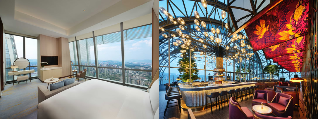 上海佘山世茂洲際酒店,地平線下88米的“建筑奇跡”,由世界知名設(shè)計師Martin Jochman團隊打造,將自然巖壁與現(xiàn)代設(shè)計完美融合。酒店330間客房與套房各具特色,包括巖壁景觀房與水下套房,帶來沉浸式住宿體驗。餐飲涵蓋現(xiàn)代感十足的“源咖啡”全日餐廳、綺麗獨特的彩豐樓中餐廳以及四周環(huán)繞水族館的“漁火”特色餐廳;酒吧與大堂吧將深坑景觀與自然美景相映成趣,讓賓客在自然奇境中享受別具一格的入住體驗。