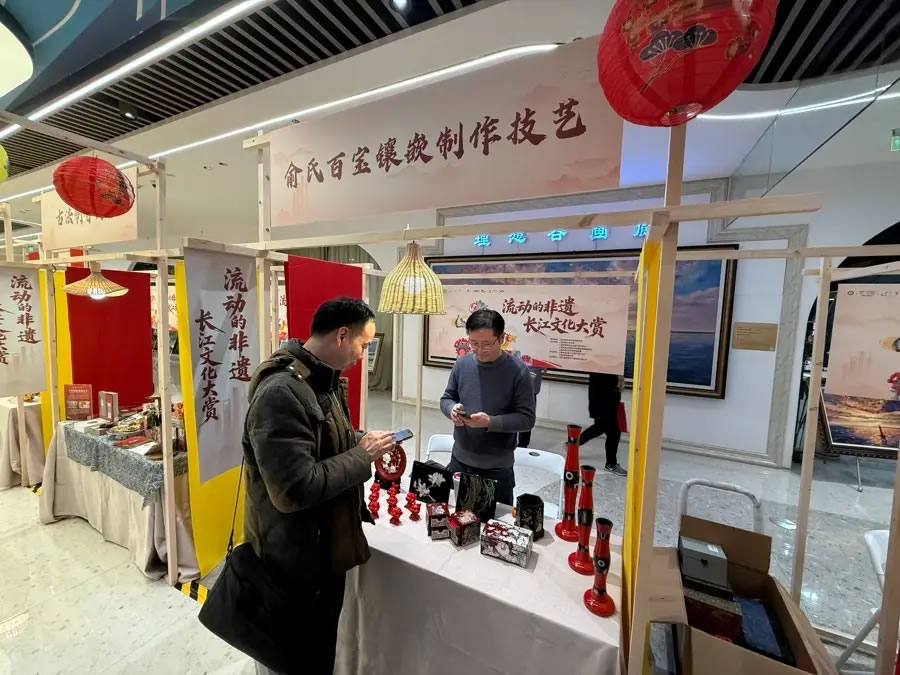 掛上紅燈籠,擺上精致的剪紙、竹編、漆器,一個(gè)熱鬧的非遺市集開張了。作為“上海新年第一游”寶山主會(huì)場(chǎng)活動(dòng)的組成部分,昨天,“流動(dòng)的非遺·長(zhǎng)江文化大賞”率先在寶山濱江的上海·海上世界商圈拉開序幕。