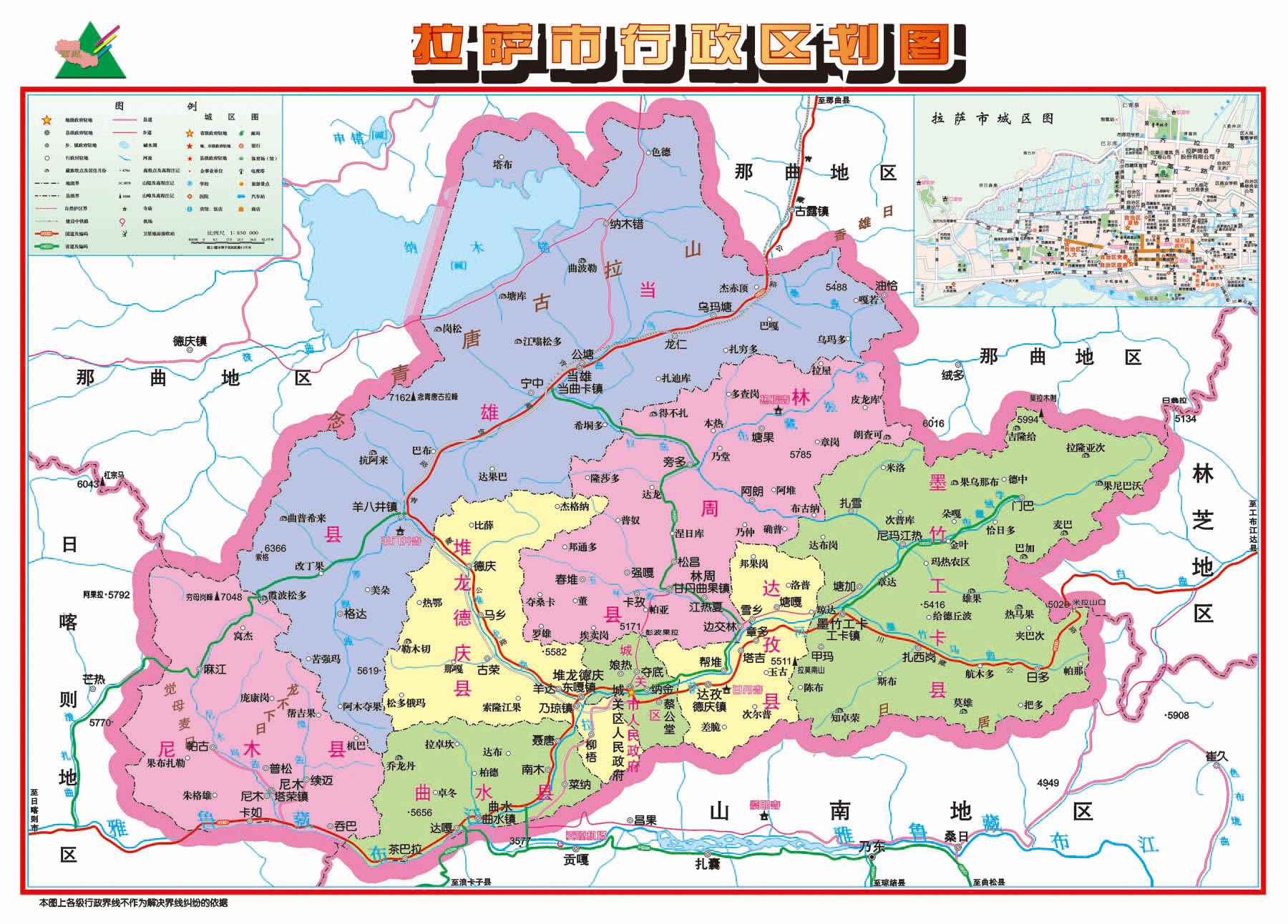 拉薩市轄3個市轄區(qū)、5個縣: