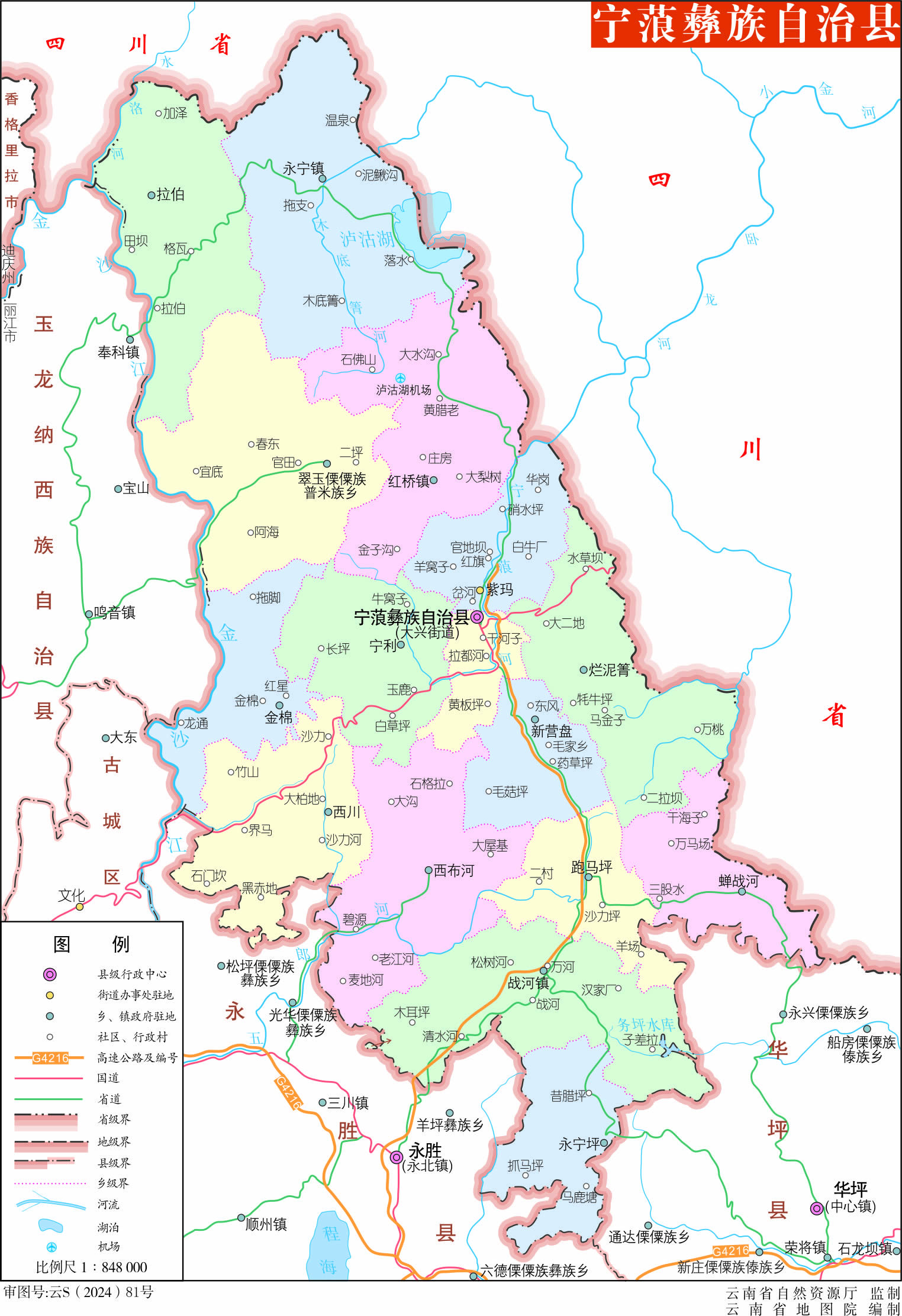 寧蒗彝族自治縣轄2個(gè)街道、3個(gè)鎮(zhèn)、11個(gè)鄉(xiāng):
