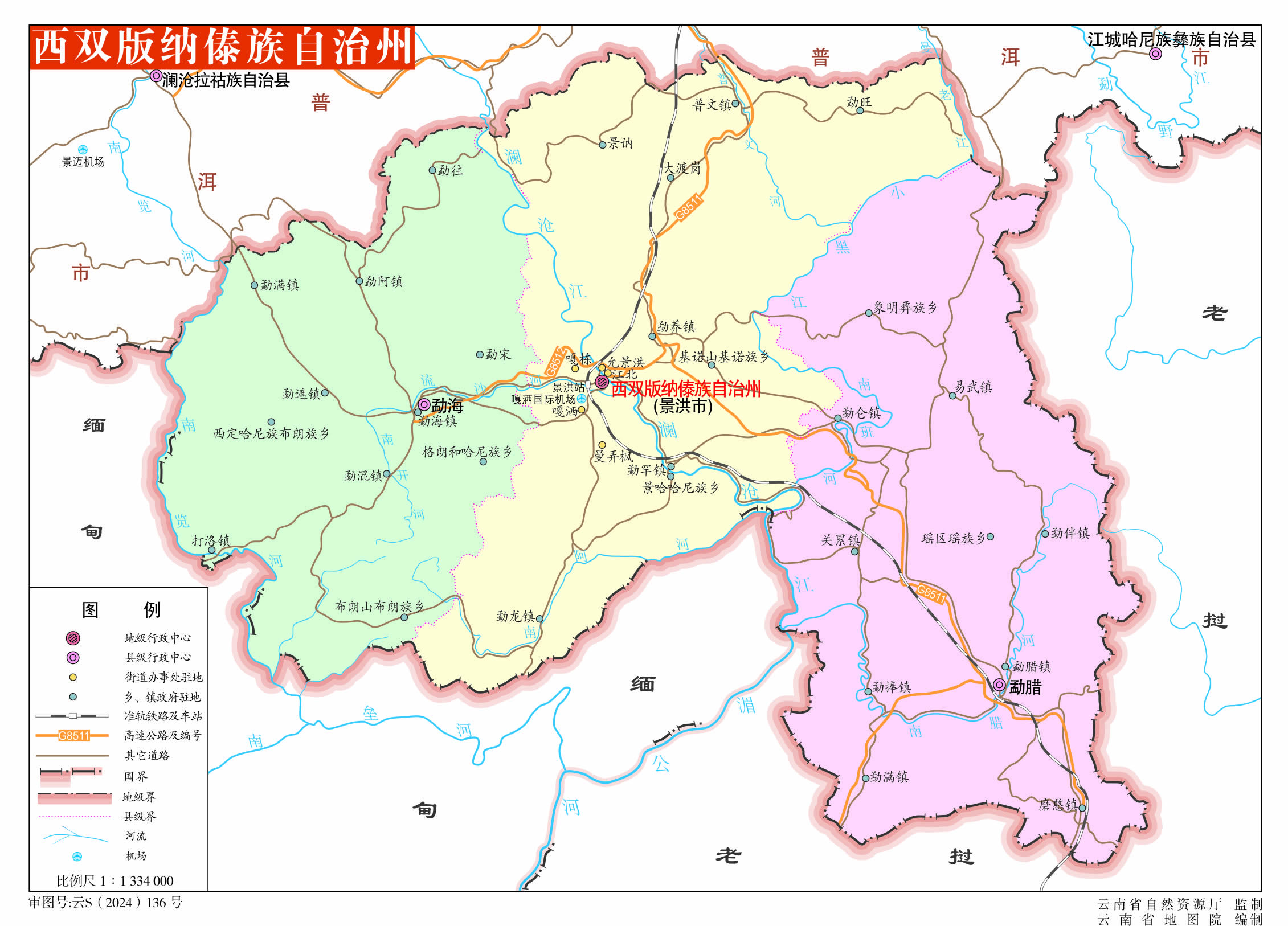 西雙版納傣族自治州轄1個縣級市、2個縣:
