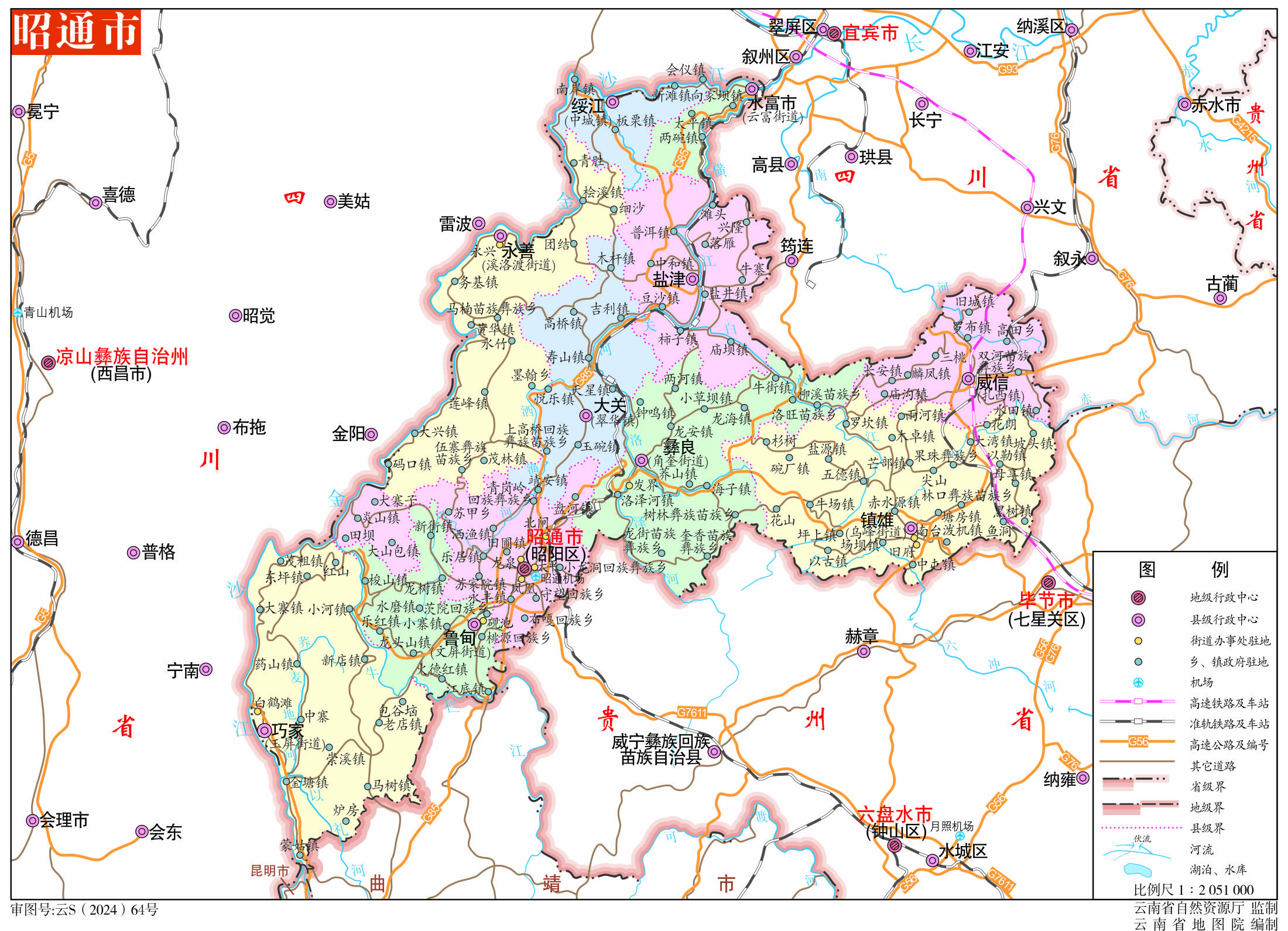 彝良縣 面積2795.76平方千米,人口503376,政府駐角奎街道,下轄2個街道、9個鎮(zhèn),5個鄉(xiāng)