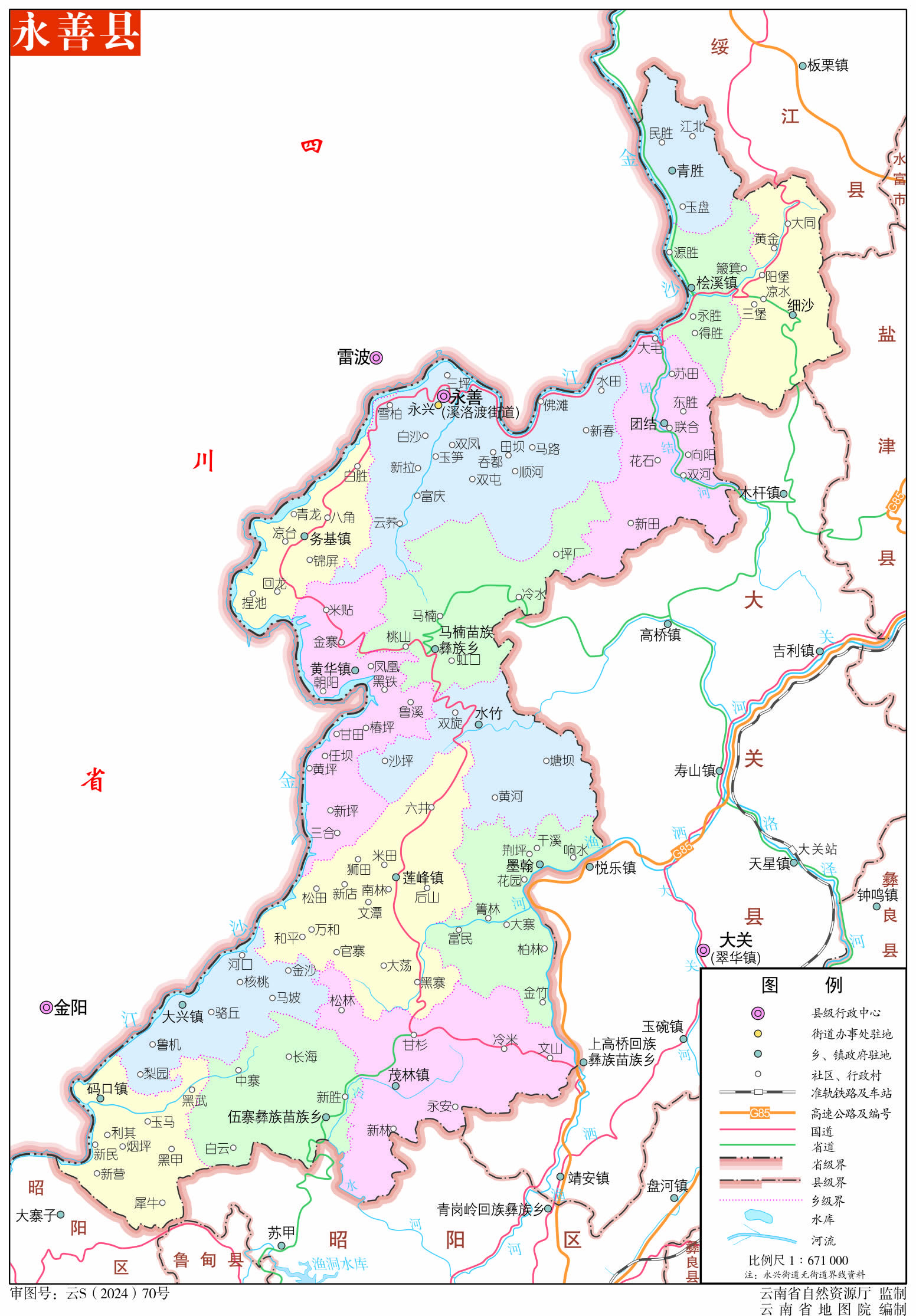 永善縣轄2個(gè)街道、7個(gè)鎮(zhèn)、7個(gè)鄉(xiāng):