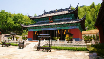 禹廟位于禹陵北側(cè),為歷代帝王、官府和百姓祭祀大禹的地方。禹王廟坐北朝南,周以丹墻。是一組宮殿式建筑群,總體布局沿南北軸線展開(kāi),前低后高,左右對(duì)稱,主要建筑物自南而北,依次為照壁、岣嶁碑亭、欞星門(mén)、午門(mén)、拜廳、正殿,依山勢(shì)逐漸上升,禹王廟之照壁與南墻相連。順山勢(shì)逐步升高,殿前鋪設(shè)石階。配以窆石亭、宰牲房、菲飲泉等景點(diǎn)。(史籍記載,夏啟和少康都曾建立禹廟,但已難考)。今廟始建于南朝梁武帝大同十一年(公元545年),歷代屢建屢毀,F(xiàn)存大殿建筑系民國(guó)二十二年(公元1933年)重建,其余部分為清代重建。