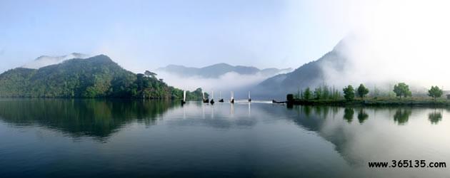仙宮湖:崛立在云和縣緊水灘的浙南第一壩緊水灘水電站大壩,將滔滔甌江攔腰鎖住。在水電站建成的同時,浙南的茫茫林海中奇跡般地出現(xiàn)了一個巨大的人工湖緊水灘庫湖。1993年8月9日經(jīng)地區(qū)行署批準,改名為仙宮湖。放眼全湖,碧波蕩漾,晶瑩似鏡,周圍千姿百態(tài)的奇巖異峰、浩如煙海松濤,點綴湖邊的村莊、田野和山林,好似一幅色彩斑斕,絢麗多姿的山水畫。這里廣闊的湖面,煙波浩渺,水山相連,望不盡頭。與千島湖相比,雖無“千島”之態(tài)。但湖中島嶼正在一個個形成。隨著蓄水位的漸漸增高,將會出現(xiàn)更多“湖心之島”。那晶瑩澄碧的湖水在陽光的照射下,閃著瀲滟的波光,似一顆閃眼的明珠,鑲嵌在群山峻嶺之中。湖兩旁的松杉。翠竹掩映于湖唇,好似繡上一道花邊,君若泛舟湖中,其可謂“人行明鏡中”了。倘若天氣作變,更給景色增添妙異的變幻。晴天,頭上藍天萬里,腳下碧波千頃,點點白帆移動,轟轟船只掠過,舉目望去,山水一色;回首顧盼,卻置身于綠水青山之中。雨天,霧靄茫茫,層林碧水連成一片,人在湖面,有身置云霧瓊樓仙境之感。尤其在赤石、龍門一帶,水域?qū)掗煟瑣u嶼列布,湖區(qū)四周還有“九潭十八灣”、“夏洞天”、“龍老洞”、“蝴蝶洞”、“牛頭山”等勝景。仙宮湖不愧為特具魅力的旅游勝地。