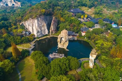 三國(guó)時(shí)期,這里曾是一處采石場(chǎng),經(jīng)歷代能工巧匠的不斷開鑿,鬼斧神工般地造就了姿態(tài)各異的石宕、石洞和石壁。千百年來,隨著宗教的介入,文人名流的渲染及后人的開發(fā),現(xiàn)已形成天工大佛、爐柱晴煙、七星巖、八卦臺(tái)、文昌閣、蠶花洞、蓮花聽音等景觀。