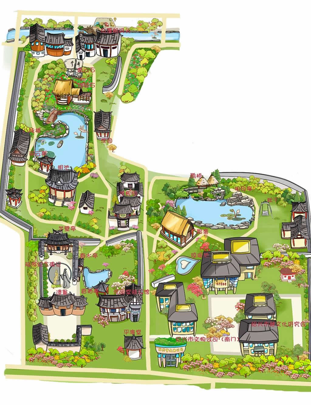 植物:沈園共有68種植物,包括了喬木、灌木、藤本和水生植物各個(gè)類(lèi)別。種植密度以東苑和北苑較大,主要用來(lái)對(duì)苑內(nèi)空曠地帶進(jìn)行補(bǔ)充,彌補(bǔ)線(xiàn)路上建筑數(shù)量少而在立面和平面上形成的空隙;東苑還設(shè)置了一小塊杉木林帶,疏密相間。