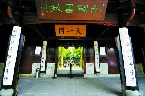 明嘉靖四十年至四十五年(1561年—1566年),明兵部右侍郎范欽開始于宅東建造藏書樓,并命名為“天一閣”。時(shí)藏書七萬余卷。