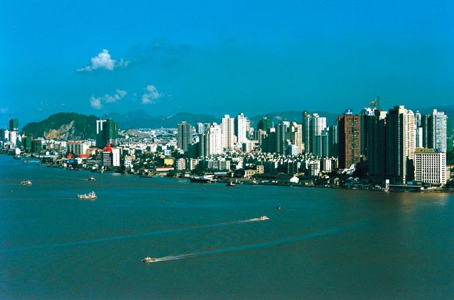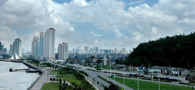 溫州市位于浙江省東南部,東瀕東海,南與福建省寧德市的福鼎、柘榮、壽寧三縣毗鄰,西和麗水市的縉云、青田、景寧畬族自治縣相接,北和東北與臺州市的仙居、黃巖、溫嶺、玉環(huán)四縣為界。地勢自西向東傾斜,西部屬浙南中山區(qū),迤東高度逐漸降低為丘陵地,東部是沿海平原。陸域面積12110平方千米,海域面積8649平方千米,海區(qū)負(fù)200米等深線以內(nèi)的面積6.67萬平方千米。
