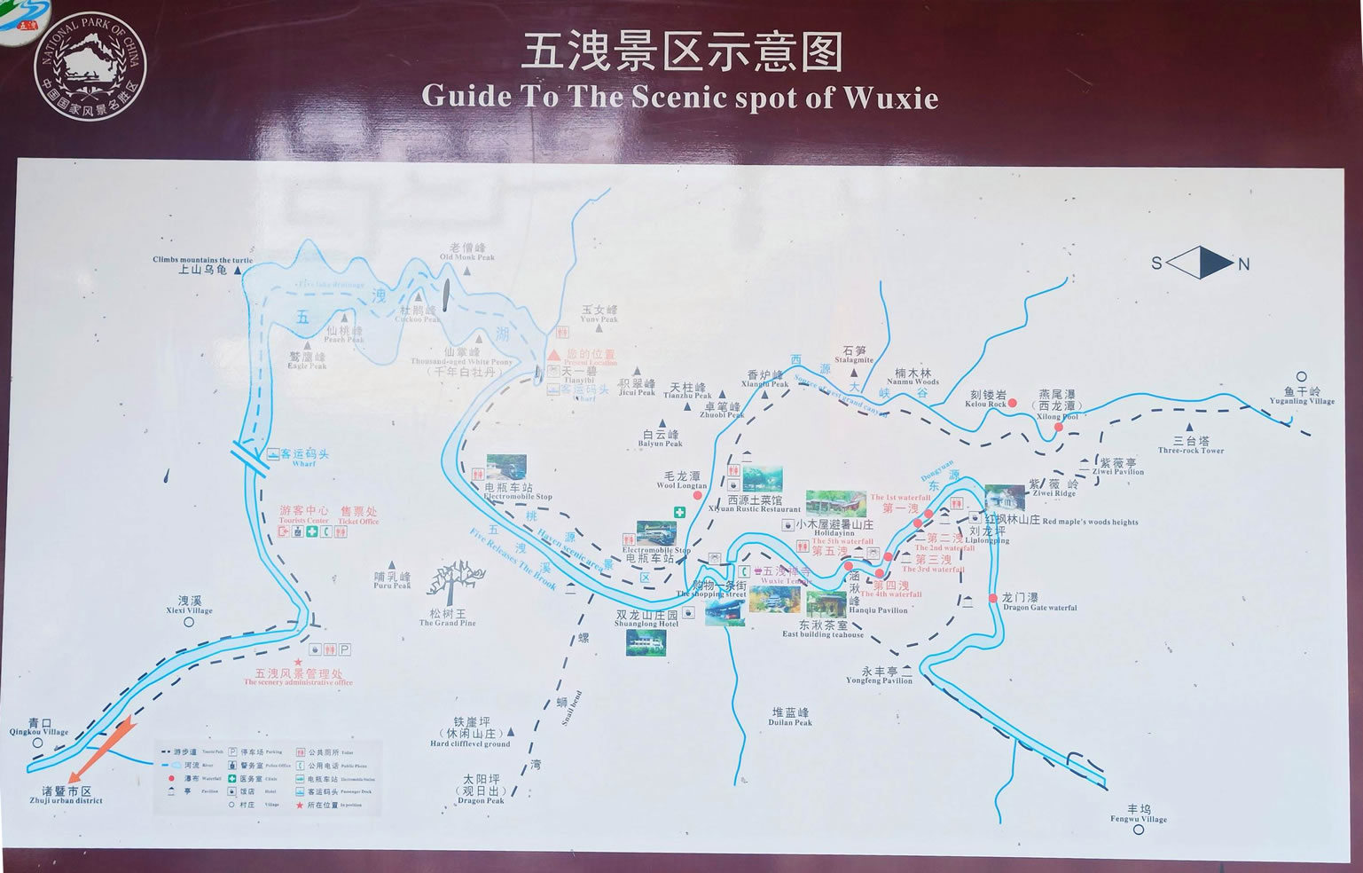 諸暨五泄風(fēng)景區(qū)位于諸暨市西北23公里處。72峰、36坪、25崖、10石、5瀑、3谷、2溪、1湖,為五泄構(gòu)成了天然的山水畫卷,素有“小雁蕩”之稱。當?shù)厝朔Q瀑布為洩,一水折為五級,所以叫“五洩”。五泄飛瀑為大型奇幻古裝電視劇【水月洞天】取景處。