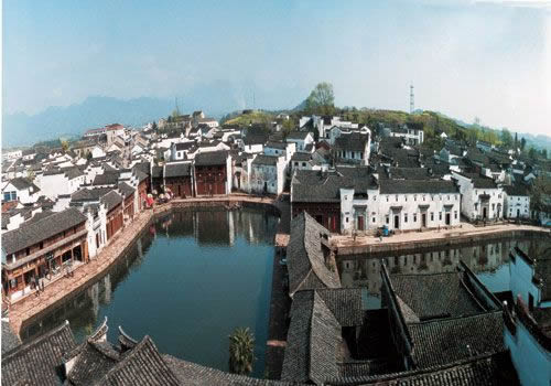 諸葛八卦村,位于浙江中西部蘭溪市境內(nèi)的群山中,據(jù)考證,該村是由諸葛亮27世孫諸葛大師于元代中后期開始營建的。有600余年的歷史,仍保存完好,成為人們旅游訪古的新去處。村落在8座小山的合抱之中,這8座小山的分布很像八卦的樣子,形成外八卦;村中的樓宇建筑、街道八方呼應(yīng)!扮姵亍蔽挥谥行,似太極陰陽魚圖,8條小巷向外輻射,形成內(nèi)八卦。